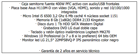 Durante este mes Bouge pone a la venta un equipo con una configuración robusta y estable a un precio muy ventajoso. Puede ver sus características en el siguiente cuadro: